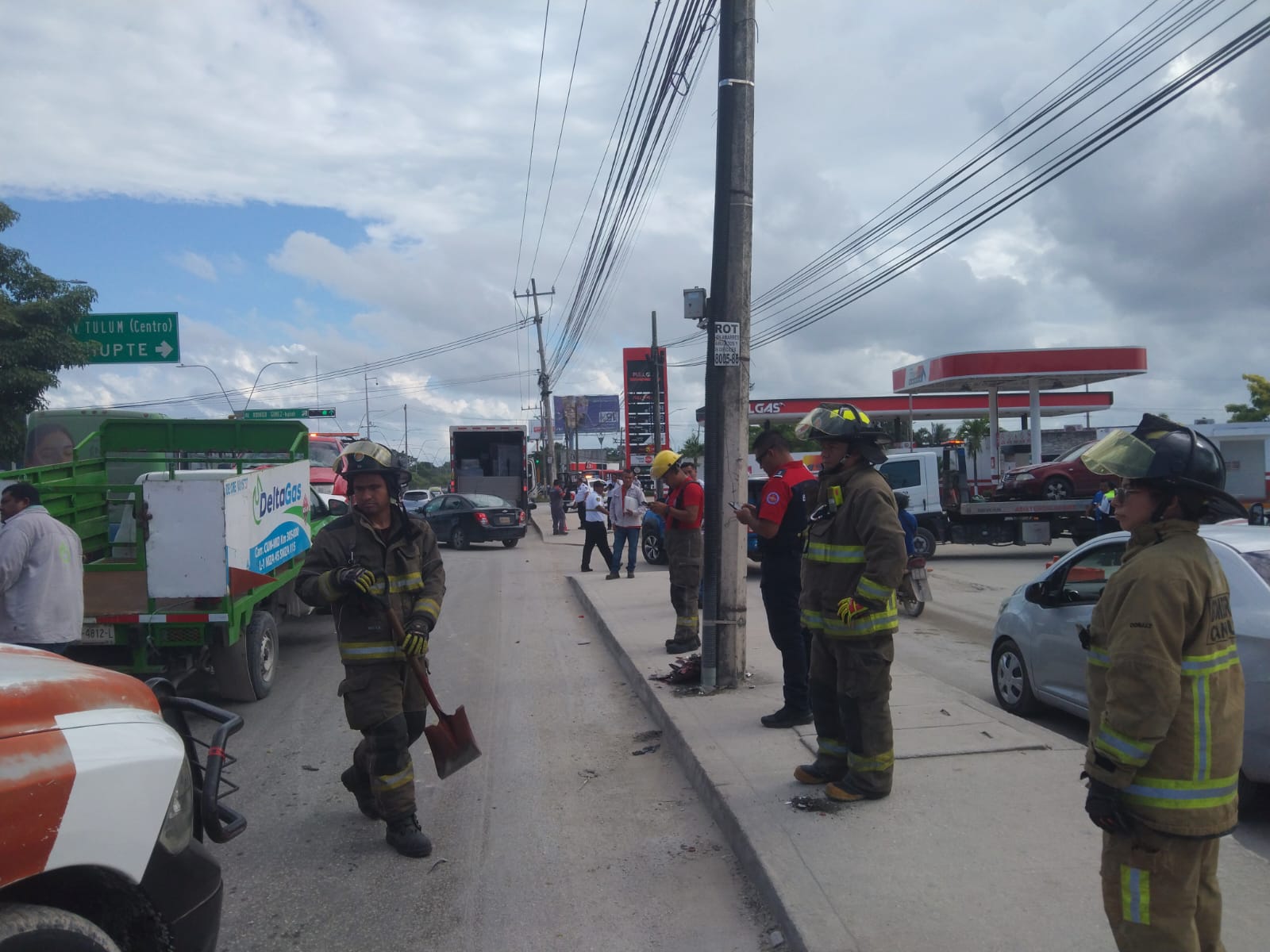 Cancún.- Una carambola interrumpió la mañana de este miércoles en la avenida José López Portillo, a la altura de la avenida Nichupté, dejando a varias personas con lesiones leves, daños materiales considerables y fuerte congestionamiento vial.