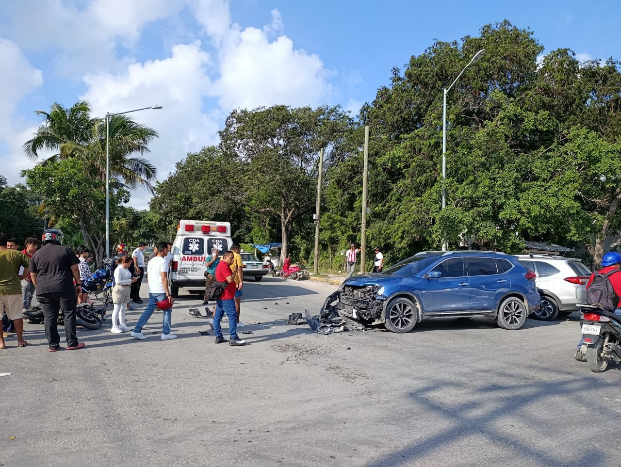 El automóvil, según testigos, salía de una intersección en dirección del Oriente al Poniente sobre la avenida Muyil cuando ocurrió el percance que movilizó a corporaciones de seguridad y equipos de emergencia.