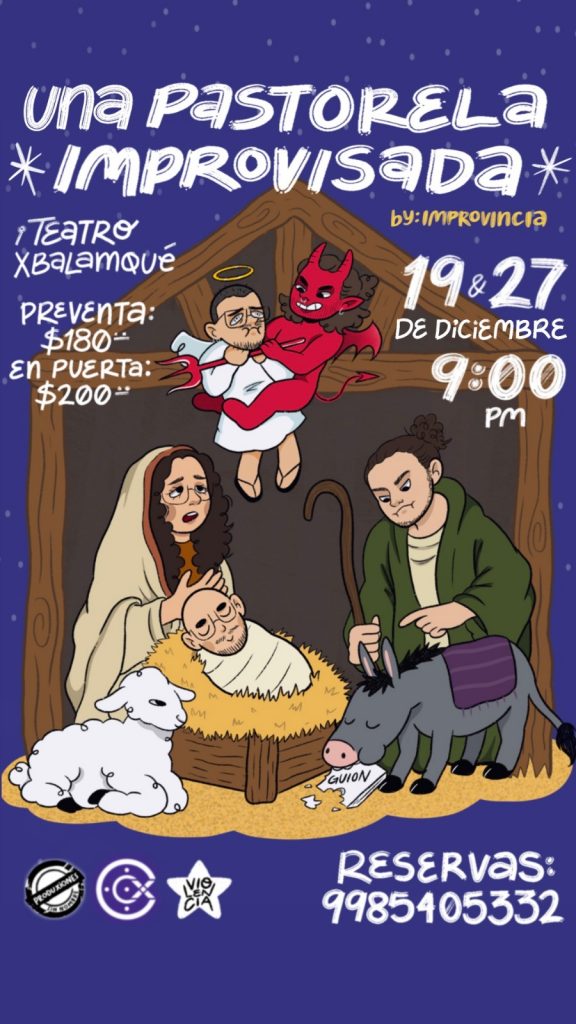Cancún.- El Centro Cultural Xbalamqué (CCX) se prepara para recibir una propuesta fresca, irreverente y profundamente teatral: La Pastorela Improvisada, a cargo del colectivo Improvincia Cancún, un grupo de jóvenes artistas que ha conquistado al público local a fuerza de ingenio, rapidez mental y una conexión escénica que convierte cada función en una experiencia única.