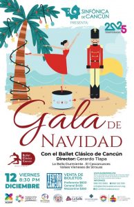 La Gala de Navidad se presentará el viernes 12 de diciembre a las 20:30 horas en el Teatro de Cancún. Los boletos están disponibles en taquilla y a través de la plataforma tusboletos.mx.