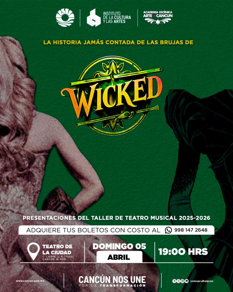 Cancún.- La magia del teatro musical toma forma en una propuesta que invita a descubrir lo que hay detrás de una de las historias más conocidas del escenario contemporáneo. Inspirada en el universo de Wicked, esta puesta en escena revela el origen, la amistad y los matices ocultos de sus icónicas brujas.