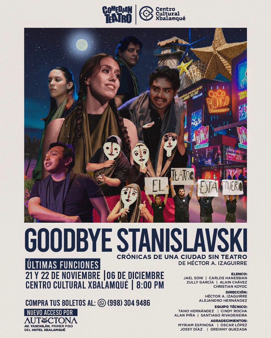 Cancún.- Hay obras que llegan para mover el alma y recordarnos que el teatro es un espejo vivo de la ciudad, y “Goodbye Stanislavski: Crónicas de una ciudad sin teatro” es una de ellas. En su recta final y en medio de un auge cultural inusitado, esta puesta en escena se despide dejando un eco profundo entre quienes han sido testigos de su fuerza, su sensibilidad y su mirada crítica hacia la vida cultural de Cancún.