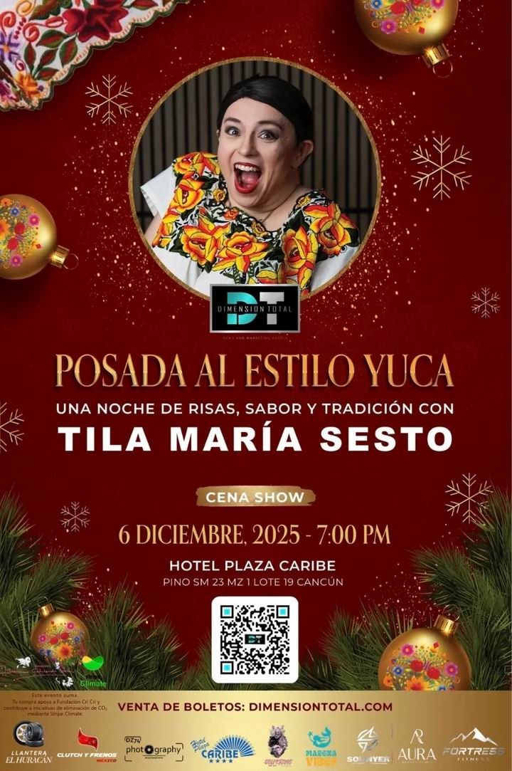 Cancún.- Este 6 de diciembre la alegría navideña se vivirá con identidad propia, la comunidad tendrá oportunidad de disfrutar una celebración que combina humor, gastronomía y música regional. Tila María Sesto prepara una Posada Yuca que promete envolver a los asistentes en el espíritu navideño al estilo del sureste, con una velada que rinde homenaje a las costumbres que distinguen a la península.