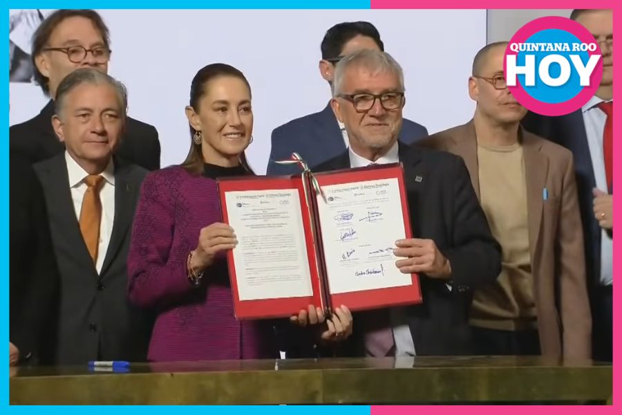 Tras la exposición del proyecto en puerta, la presidenta Sheinbaum Pardo, Rosaura Ruiz, José Merino y Mateo Valero, firmaron el convenio.