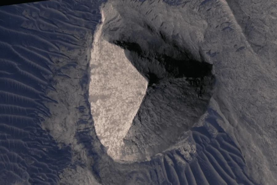 La formación, de tres lados simétricos, fue capturada por la cámara HiRISE del orbitador Mars Reconnaissance Orbiter. Su tamaño ha sido comparado con la Gran Pirámide de Giza, lo que ha generado especulaciones virales en redes sociales.