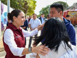 En su recorrido, Ana Paty Peralta dialogó en la parada del transporte público con estudiantes de la licenciatura de Turismo de la Unicaribe, a quienes les explicó que la obra beneficiará a su entorno escolar, ya que también se hará la limpieza de rejillas al interior de dicha institución para evitar encharcamientos en caso de lluvias.