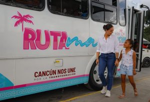 Cancún.- Bajo el lema “Playas para todas y todos” y como un acto de justicia social, la Presidenta Municipal, Ana Paty Peralta, anunció la puesta en marcha del proyecto “Ruta Mar”, una servicio gratuito de transporte público que llevará a los cancunenses a cuatro playas de la zona hotelera, exclusivamente los fines de semana, para que los cancunenses disfruten de las bellezas naturales del destino.