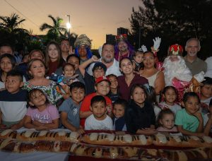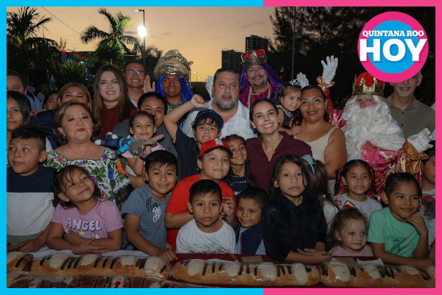 Cancún.- En un ambiente de alegría y festividad, la Presidenta Municipal, Ana Paty Peralta, compartió con cientos de cancunenses y visitantes la Rosca de Reyes más grande de la ciudad, de 750 metros de longitud, superando así a la de 2025, que midió 550 metros.
