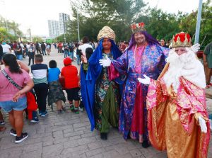 Además, los Reyes Magos hicieron su aparición con vistosos trajes y coronas doradas, emocionando a las niñas y niños que aprovecharon para tomarse la foto del recuerdo.