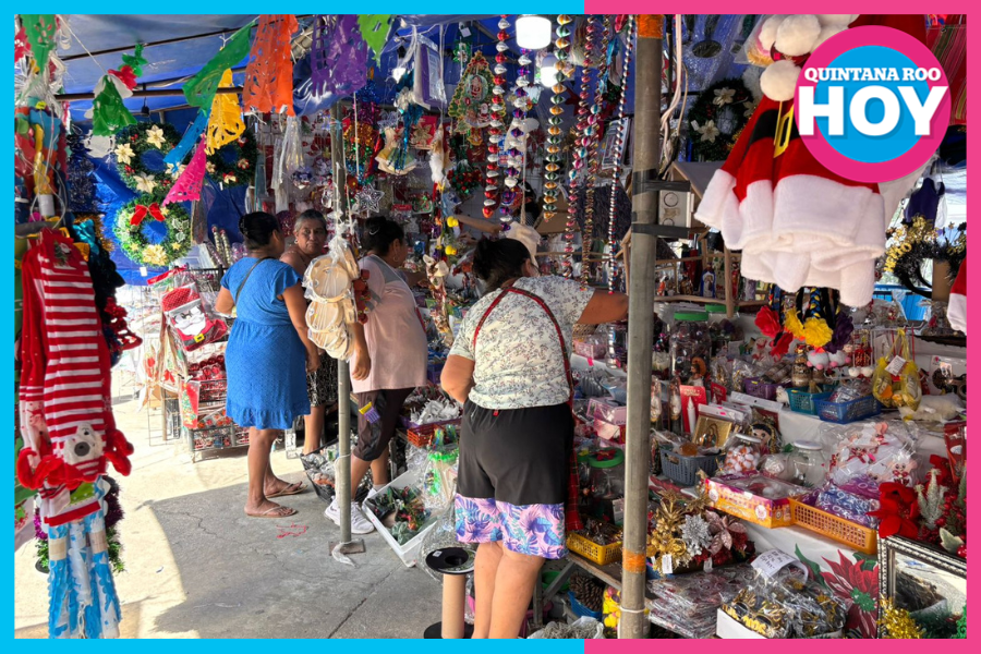 Cancún.- Con la llegada de aguinaldos y la primera quincena de diciembre, los tianguis y mercados populares de Cancún viven un importante repunte en ventas, especialmente de productos navideños que muchos cancunenses aún buscan para decorar sus hogares y estar listos para las celebraciones.