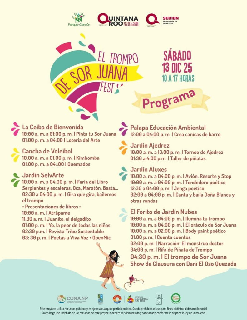 Cancún.- Este 13 de diciembre, Parque Cancún se convertirá en un gran laboratorio de creatividad con la llegada del TrompoFest Sor Juana Inés de la Cruz, una fiesta cultural pensada para que niñas, niños y sus familias descubran, aprendan y jueguen en un entorno natural.