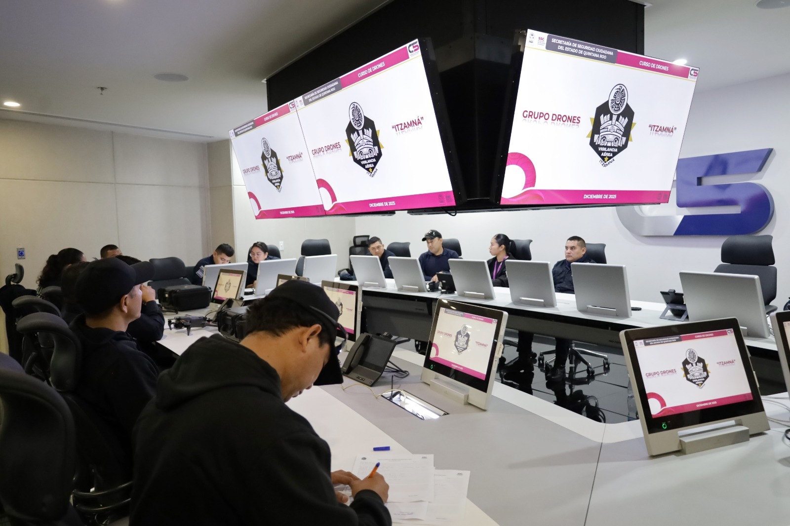 Elementos del Grupo de Drones Itzamná imparten un curso especializado, con el objetivo de fortalecer las labores de vigilancia y prevención del delito en Quintana Roo.