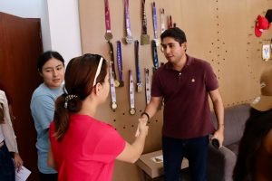El titular de la CODEQ recibió en las oficinas del Centro Estatal Deportivo de Alto Rendimiento (CEDAR) de Cancún a los equipos, con los que convivió y platicaron sobre lo vivido en el Malecón Tajamar Cancún, así como de hacer entrega de unos premios en monedero para hacerse de equipo deportivo.