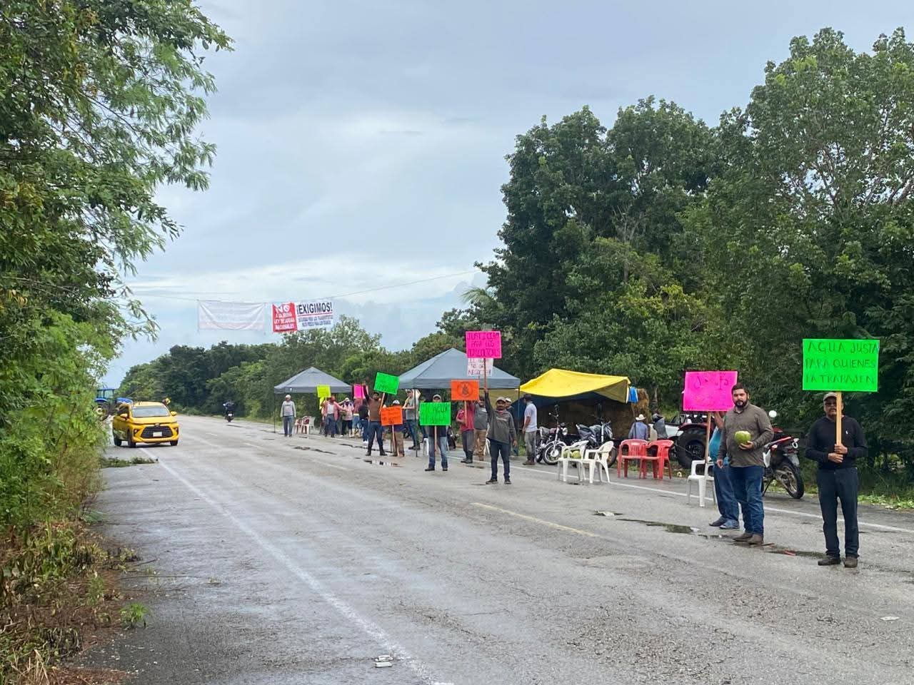 Chetumal.- Ciudadanos bloquearon la carretera cafetal-Mahahual la tarde de este lunes, en contra de la Ley General de Aguas 2025, que tiene por objeto regular la explotación, uso o aprovechamiento de dichas aguas, su distribución y control, así como la preservación de su cantidad y calidad para lograr su desarrollo integral sustentable.