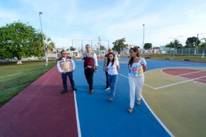 Durante el recorrido y la supervisión de este espacio recuperado, Mara Lezama explicó que en total son 4 mil metros cuadrados totalmente rehabilitados, de ellos 3 mil metros de áreas jardinadas, 42 luminarias renovadas, juegos infantiles dignos, canchas seguras y todas las áreas verdes limpias.