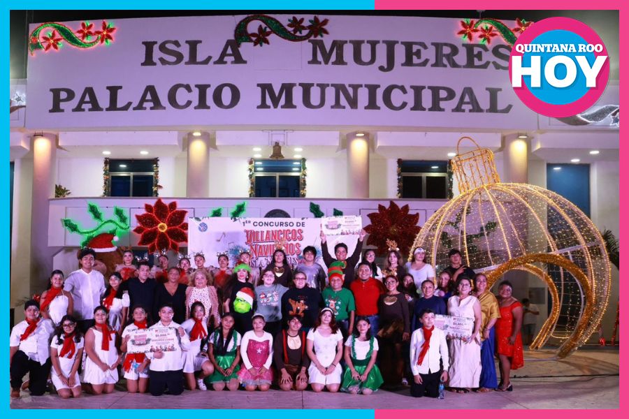 Isla Mujeres.- Con el objetivo de visibilizar el talento local y fortalecer la convivencia familiar durante la temporada decembrina, el Gobierno Municipal , que encabeza la alcaldesa, Atenea Gómez Ricalde, llevó a cabo el Primer Concurso de Villancicos Navideños en la Explanada Municipal de Isla Mujeres
