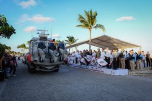Cancún.- En el Malecón Tajamar de Cancún, la gobernadora Mara Lezama Espinosa, acompañada de autoridades de los tres niveles de gobierno, dio el banderazo para el inicio del Operativo de Seguridad Guadalupe–Reyes 2025, que se desarrollará del 12 de diciembre de 2025 al 7 de enero de 2026, con el objetivo de salvaguardar a residentes y turistas durante la temporada decembrina.