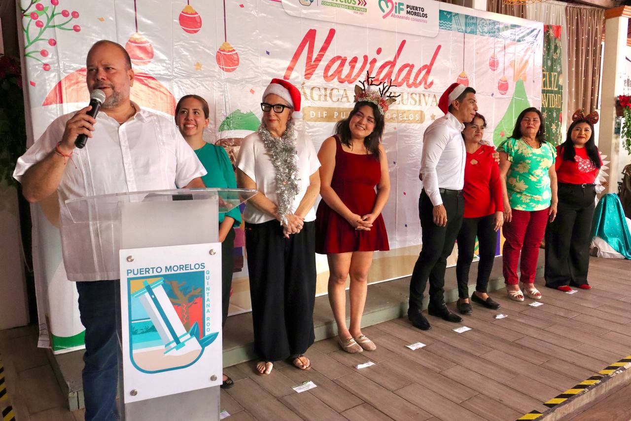 El Ayuntamiento de Puerto Morelos, a través del DIF municipal, realizó una posada navideña dedicada a niñas y niños con discapacidad y a impulsores de la transformación.