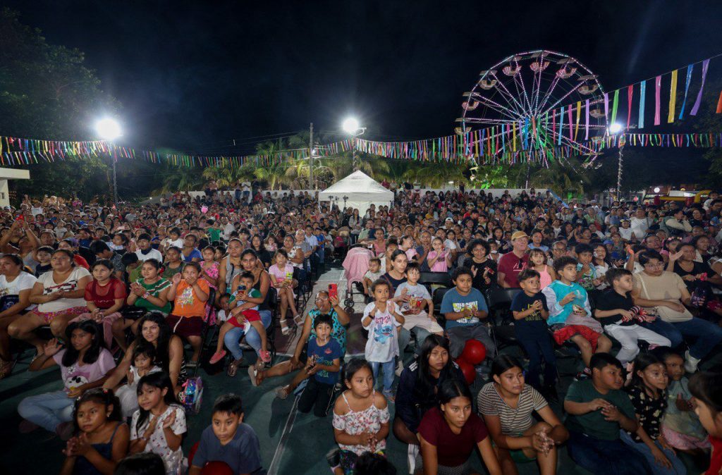 El evento, organizado por el Sistema para el Desarrollo Integral de la Familia (DIF) Puerto Morelos, permitió que alrededor de mil 100 niñas y niños, acompañados de sus padres y familiares, disfrutaran de una tarde llena de regalos, música, sorpresas, golosinas, juegos y actividades recreativas.