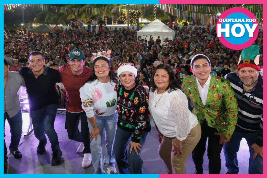 Puerto Morelos.— La magia de la Navidad se vivió con alegría, convivencia y sonrisas en el parque principal de la cabecera municipal, durante la Posada Navideña Puerto Morelos 2025, que reunió a más de 2 mil 500 personas.