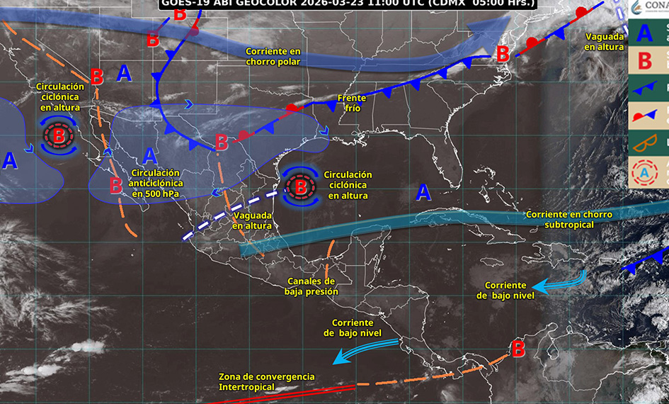A nivel nacional, una circulación ciclónica en altura y canales de baja presión provocarán lluvias y chubascos en diversas regiones del país, con precipitaciones fuertes en estados como Puebla, Veracruz y Oaxaca.