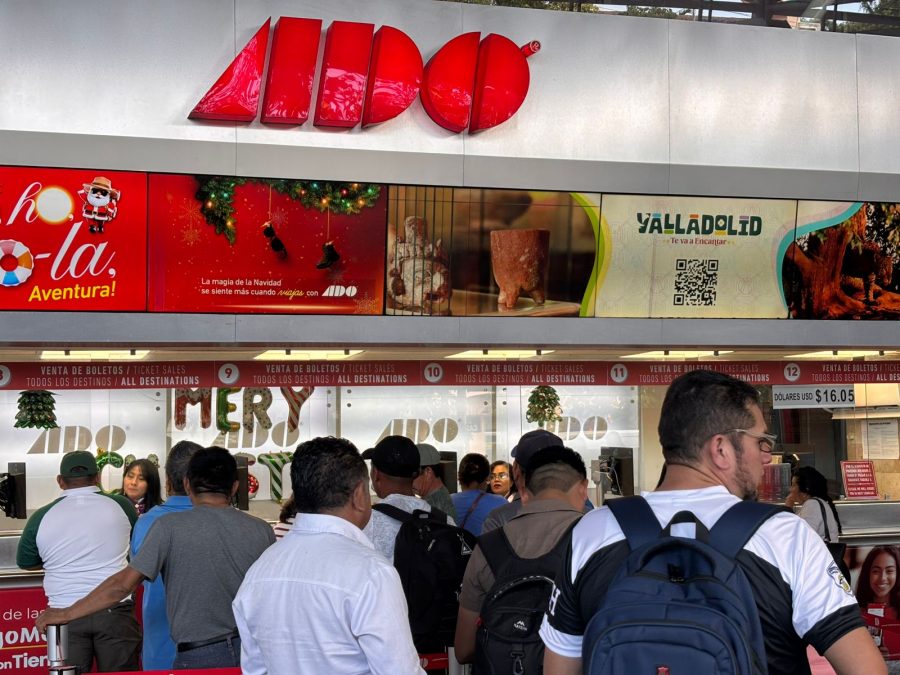 Aunque el periodo vacacional decembrino no ha iniciado de forma oficial, la terminal de autobuses ADO en Cancún ya registra un importante movimiento de salida de viajeros.