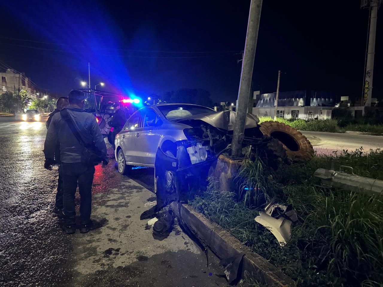CANCÚN.- Un automovilista se impactó contra un poste de alumbrado público y abandonó la unidad en el camellón central de la avenida Lak’in con Margaritas, a la altura de la Región 251, en Benito Juárez.