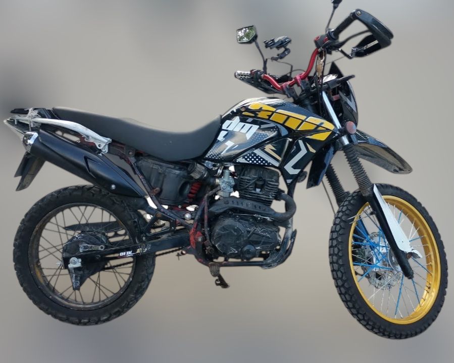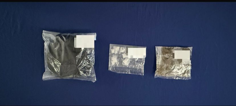 Tras explicarle el acto de molestia, los elementos realizaron una revisión en la que se aseguraron una cangurera, 33 bolsitas ziploc que contenían hierba seca con características similares a la marihuana, además de 13 bolsitas ziploc con fragmentos cristalinos similares al cristal. También se confiscó una motocicleta Italika DM 300, color negro, con placas del estado de Yucatán.