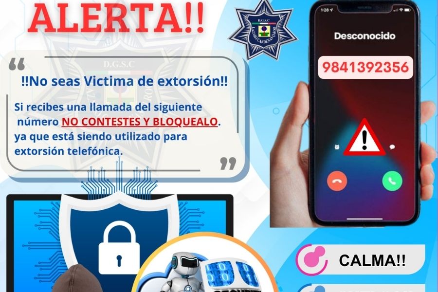 En este sentido, Seguridad Pública recomendó denunciar estos hechos ante la Policía Cibernética, al número de emergencias al 911; o bien comunicarse a los teléfonos 984 114 17 30 y 99 88 91 40 32, con el fin de que las autoridades puedan dar seguimiento y prevenir que más personas sean víctimas de este delito.