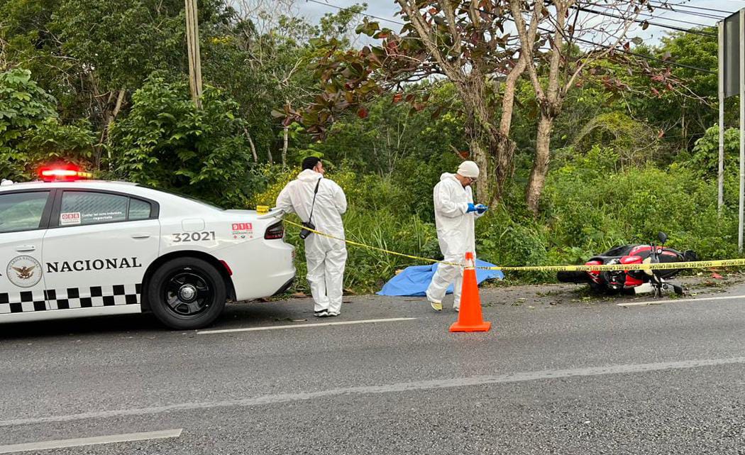 Cancún.- Una nueva tragedia vial sacudió la carretera federal 307. Un motociclista perdió la vida tras ser brutalmente arrollado por un automovilista que huyó del lugar. El cuerpo quedó tendido sobre el asfalto, a varios metros de la motocicleta.