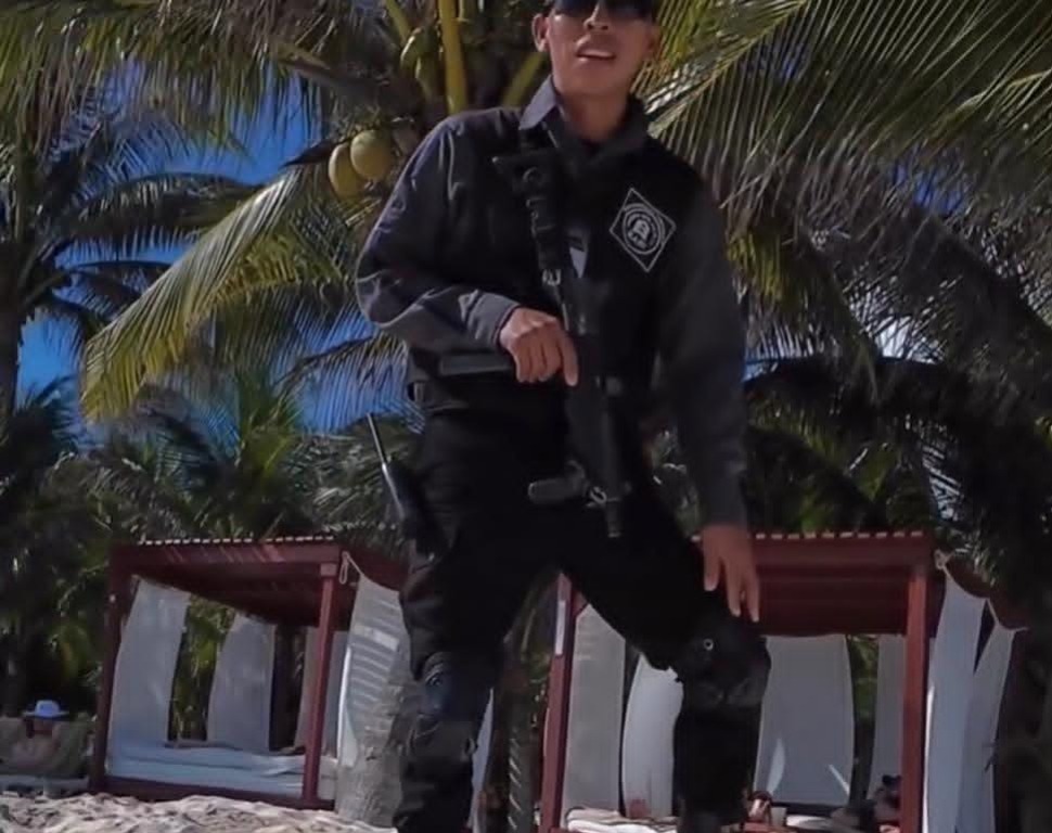 En el video, el presunto elemento —portando uniforme táctico y arma larga— se aproxima a un visitante que caminaba frente al complejo hotelero. El ciudadano le explica que se encuentra dentro del área permitida por la legislación mexicana y que no tiene intención de ingresar a la propiedad privada. El supuesto guardia responde que no tiene inconveniente en que continúe, aunque se mantiene siguiendo su recorrido a corta distancia.