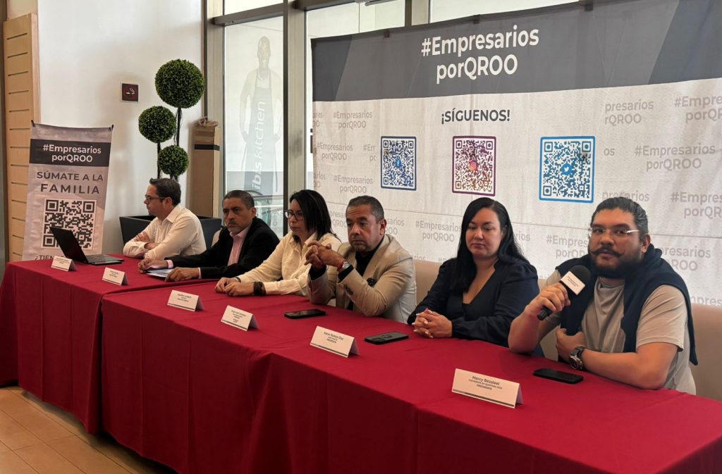Marcy Bezaleel Pacheco, presidente de Cocineros de Quintana Roo dio los detalles del certamen acompañado de Sergio León, presidente de Empresarios por Quintana Roo, entre otros invitados.