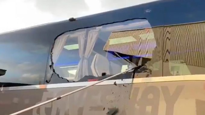 El autobús del Real Madrid fue apedreado en su llegada a Anfield, por los aficionados que se congregaron en los alrededores del estadio para esperar la llegada de ambos equipos.