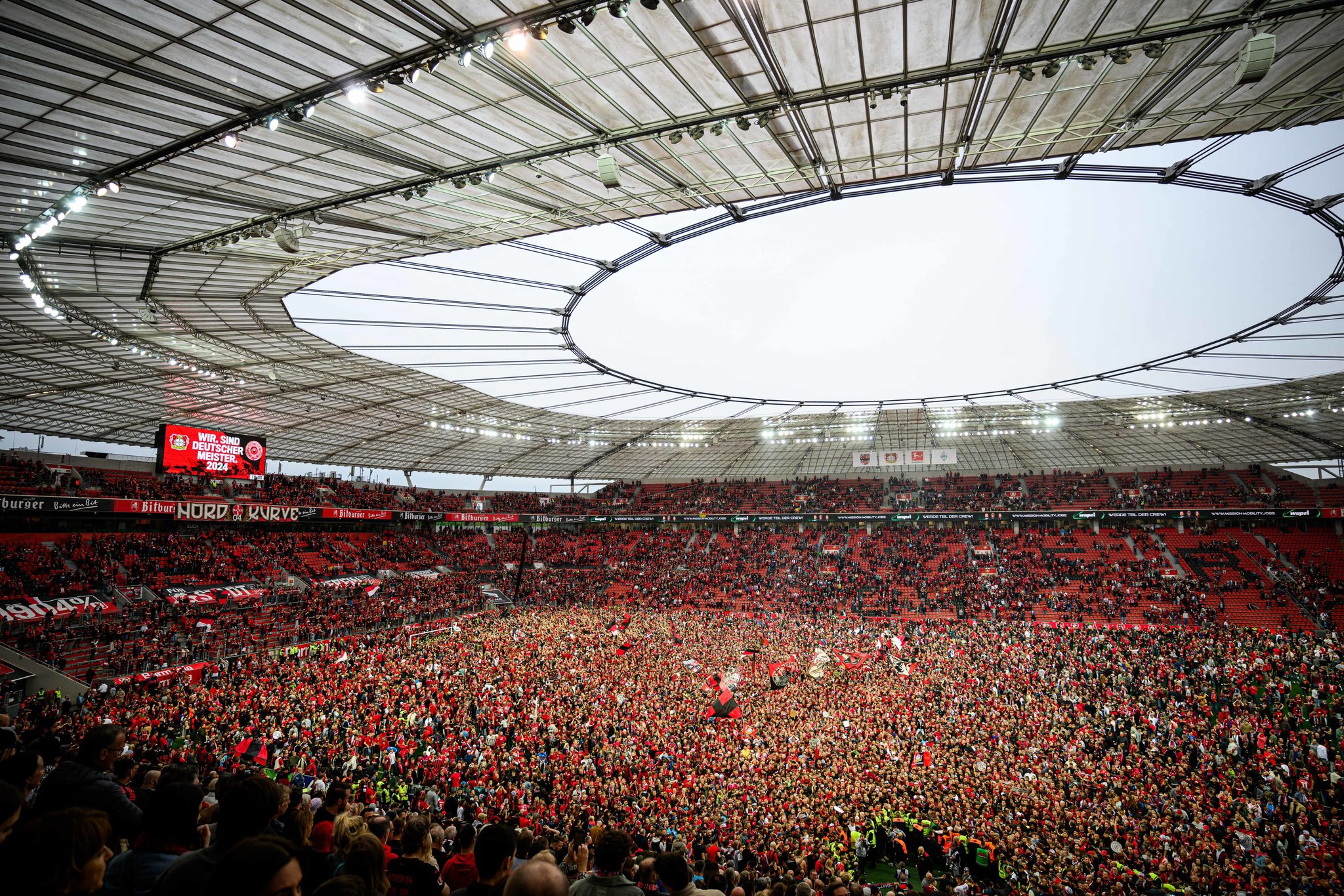 ¿Bayer Leverkusen fue campeón por primera vez en sus 119 años de historia? Así festejaron sus aficionados en BayArena. 𝗟𝗢 𝗤𝗨𝗘 𝗚𝗘𝗡𝗘𝗥𝗔 𝗘𝗟 𝗙𝗨́𝗧𝗕𝗢𝗟 𝗘𝗦 𝗨́𝗡𝗜𝗖𝗢 𝗘𝗡 𝗘𝗟 𝗠𝗨𝗡𝗗𝗢. pic.twitter.com/UpcE2eX9cS