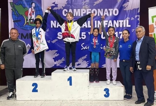 La oriunda de Tulum, Valentina Matos se adjudicó tres preseas doradas al levantar 30 kilos en arranque, 40 en envión, para un total de 70 kilogramos, dentro de la categoría de los 32 kilos Sub-11.