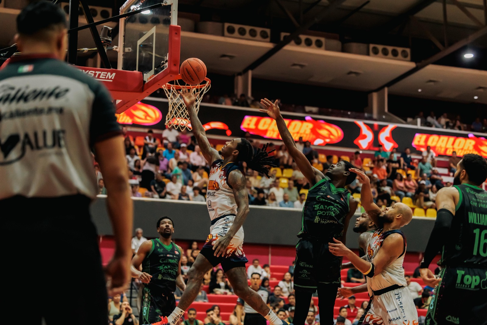 Cancún .- El Calor de Cancún fue superior en el segundo compromiso de la Serie 12 de la Temporada 2025 de la Liga Caliente.Mx LNBP, al superar con amplio marcador de 90-60 a los Santos del Potosí, durante las acciones que se disputaron en el Poliforum Cancún.