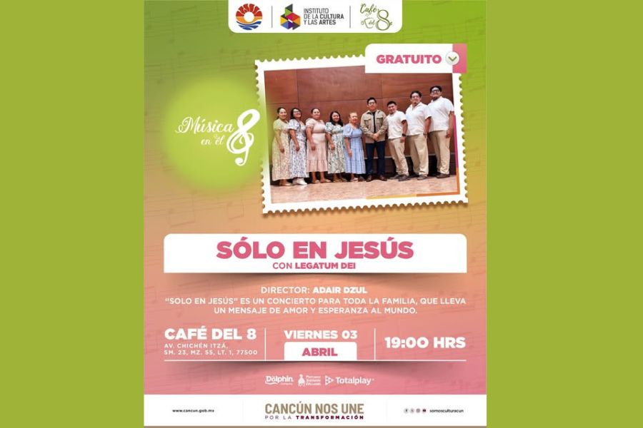 Cancún.- Los Viernes de Música en el 8 reciben en esta ocasión “Sólo en Jesús”, un concierto que invita a vivir una velada íntima donde cada nota se convierte en un puente entre emociones, comunidad y espiritualidad.
