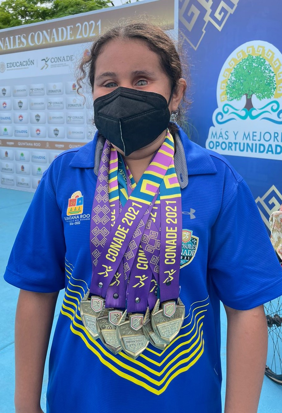 “Vale la pena todos los entrenamientos, los esfuerzos y voy a seguir entrenando y el próximo año volver a competir”, destacó Citlali Abigail Borges Tun, portando orgullosamente las cinco preseas de oro que consiguió.