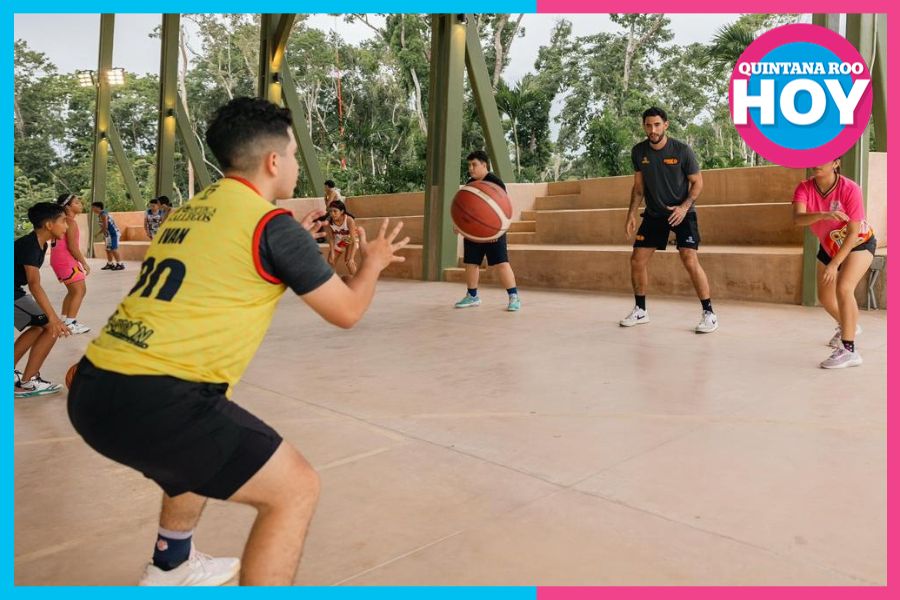 Cancún.- En el marco de su gira por la capital del estado, El Calor de Cancún ofreció una mini clínica gratuita de basquetbol en las renovadas canchas del Parque Quintana Roo, reuniendo a cerca de 100 niñas, niños y jóvenes.