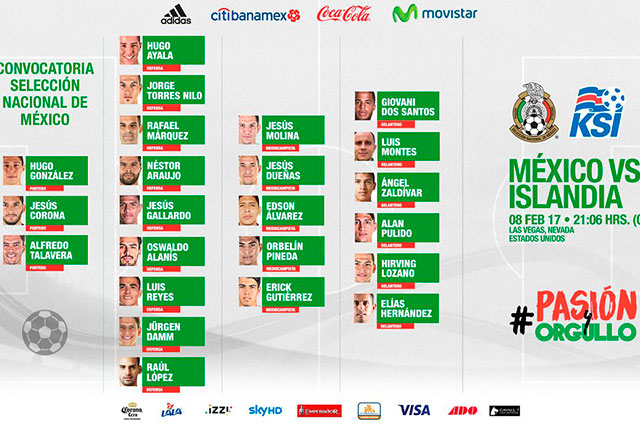 TABASCO.-Con un combinado de nuevos llamados y algunos regresos, el estratega de la Selección Mexicana, Juan Carlos Osorio, anunció su lista de convocados para enfrentar el próximo 8 de febrero a su similar de Islandia en Las Vegas, Nevada.
