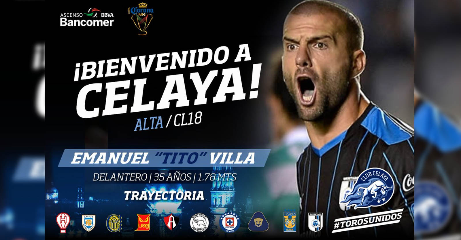 🚨 Atención Toros 🚨 Procedente de Querétaro llega para romper las redes rivales el argentino naturalizado mexicano, @TitoVilla1982. ¡Bienvenido a Celaya, “Tito”! A defender con bravura y pasión nuestros colores. #TorosUnidosPorElAscenso. pic.twitter.com/p3fAoFiuTy