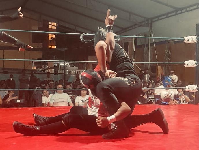 CANCÚN.– El duodécimo cartel de los “Jueves de Lucha” en “La Carnicería” de la avenida Yaxchilán con contendientes locales, resultó el más espectacular de los que se han presentado de noviembre a la fecha, y es que los asistentes que una vez más llenaron el lugar, disfrutaron de tres combates de alarido, donde aparecieron llaves, vuelos, manotazos, sillazos, una campal, sangre y hasta un referee bastante maltratado.
