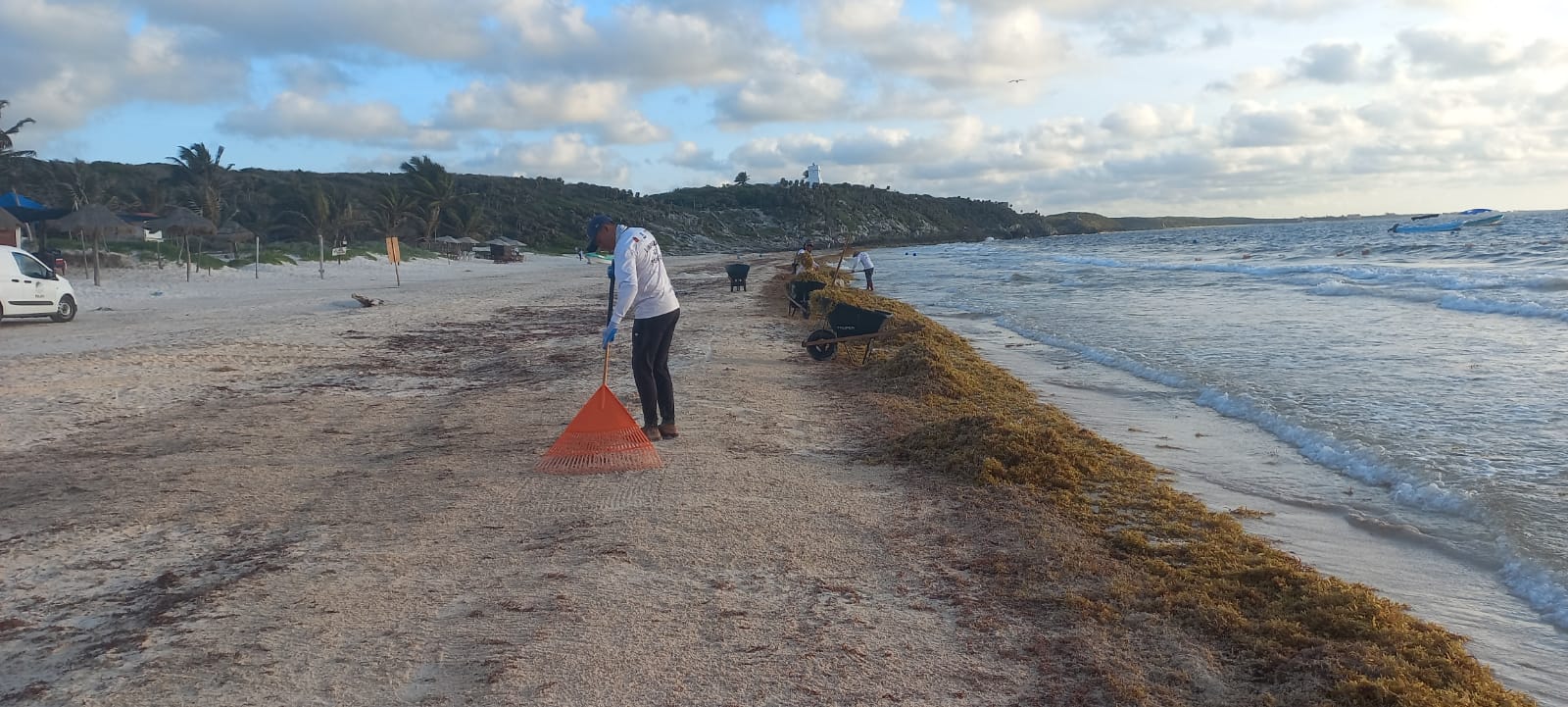 Refirió que actualmente cuentan con 30 personas que se encargan de la recolección y destino final del sargazo, sin embargo, en los próximos meses esperan un arribo masivo, por lo que se contratarán 10 personas más y se sumen a las actividades de limpieza.