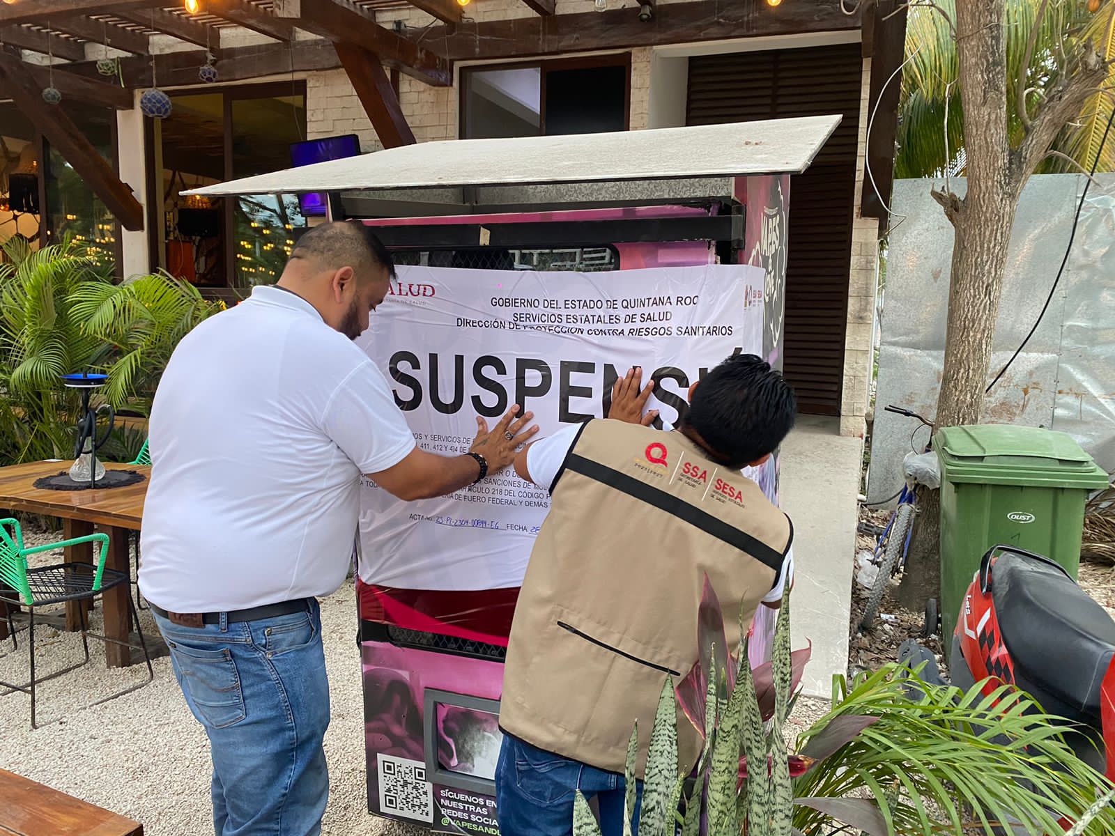Tulum.- Autoridades de la Comisión Federal de Protección Contra Riesgos Sanitarios (Cofepris) llevaron a cabo este día el aseguramiento de máquinas expendedoras de “vapes” en Tulum.