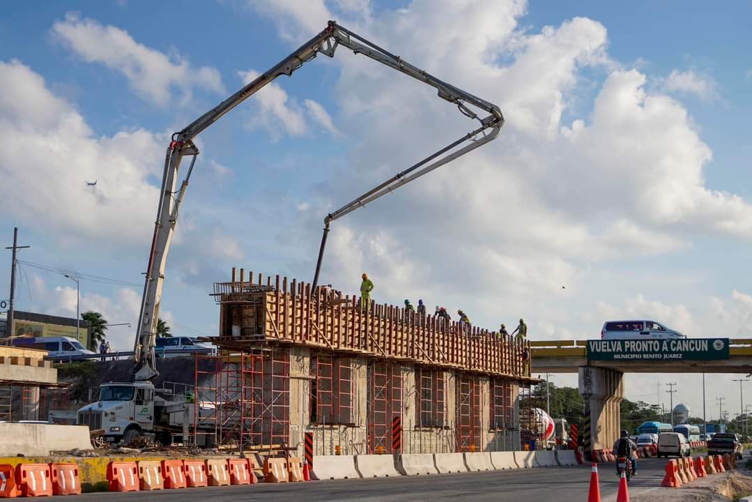 Cancún.- A buen ritmo es como avanzan las obras que se realizan en la entrada de Cancún, donde la construcción del nuevo entronque al Aeropuerto de Cancún ya supera el 20% de avance.