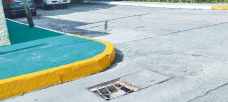 Quienes pasen por la avenida Ixcun cerca del Ombligo Verde “aguas” con una alcantarilla rota que tanto para automovilistas como para peatones resulta un peligro.