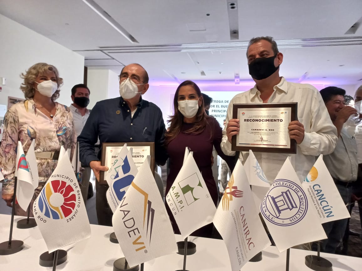 CHETUMAL. El Ayuntamiento de Benito Juárez entregó reconocimientos a representantes de diferentes corporativos, cámaras y asociaciones empresariales que implementaron medidas, estrategias y protocolos sanitarios entre sus colaboradores y afiliados para avanzar en la reactivación económica del destino para hacer frente a la pandemia por COVID-19.