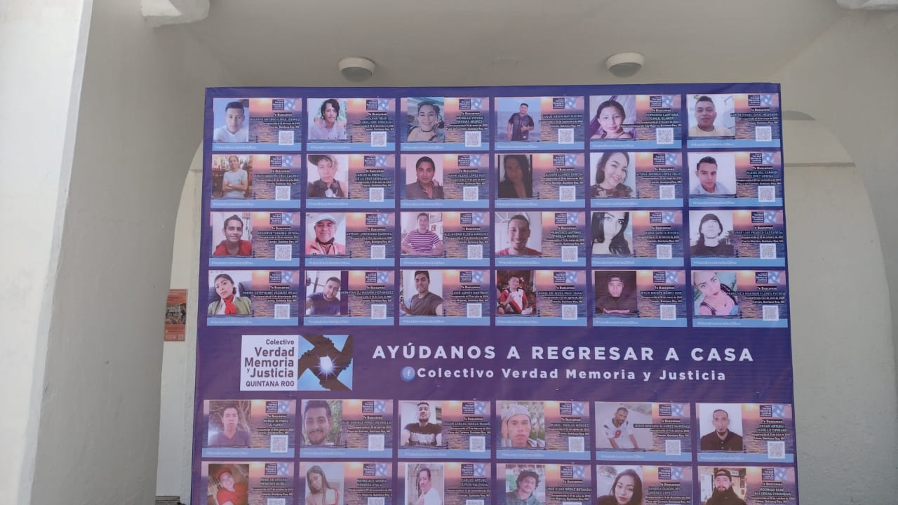 Días atrás, integrantes del colectivo “Verdad, Memoria y Justicia”, conformado mayormente por madres buscadoras, colocó la lámina en los bajos del Palacio Municipal de Benito Juárez, como acción para visibilizar esta problemática que existe en el estado, además de exigir avances en las investigaciones.