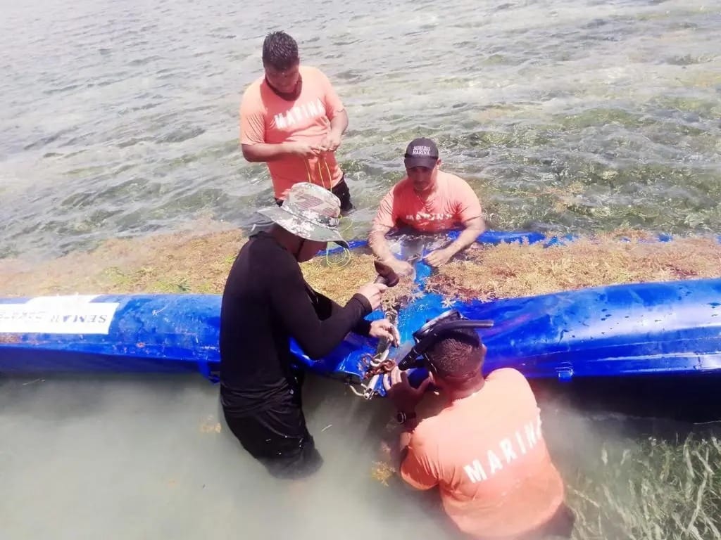 Si las condiciones del clima lo permiten, este trabajo deberá quedar listo en los próximos 8 ó 10 días. También se instala un “muerto” para destacar una barca sargacera para evitar que el material marino llegue a las playas.
