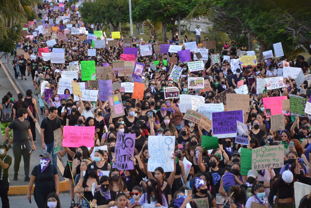 En Cancún, se llevó a cabo una Mega marcha para conmemorar el Día Internacional de la Mujer, en la que participaron un total de 17 colectivos feministas de Quintana Roo.
